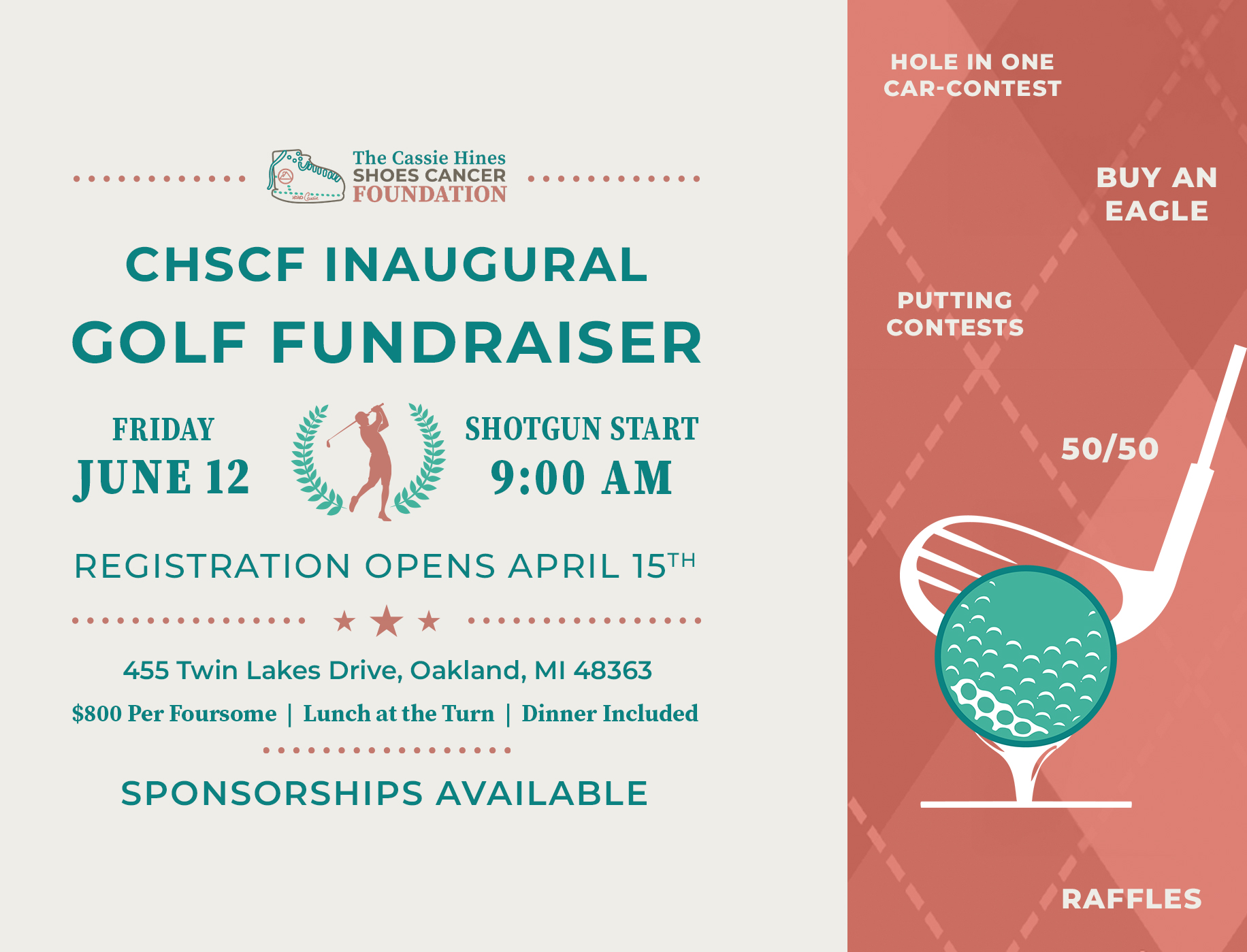 The 1st Annual CHSCF Golf Outing will be held on June 12, 2026 at Twin Lakes Golf Club, 455 Twin Lakes Drive, Oakland, MI 48363.